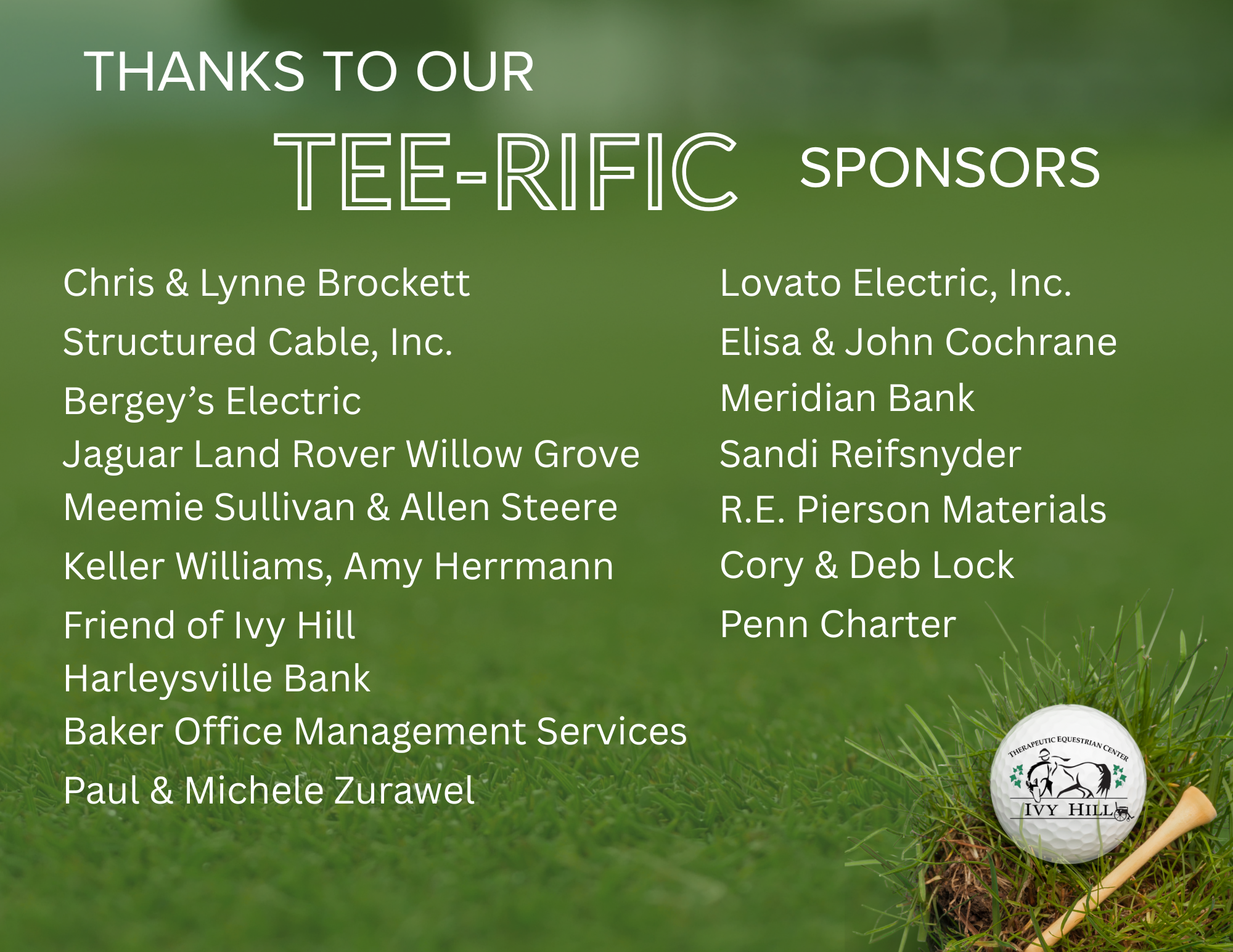 A heartfelt thank you to everyone who made our annual Ivy Hill Hope Classic Golf Ouing such a success — our sponsors, players, and amazing volunteers! Your support helps Ivy Hill continue changing lives through equine-assisted programs.